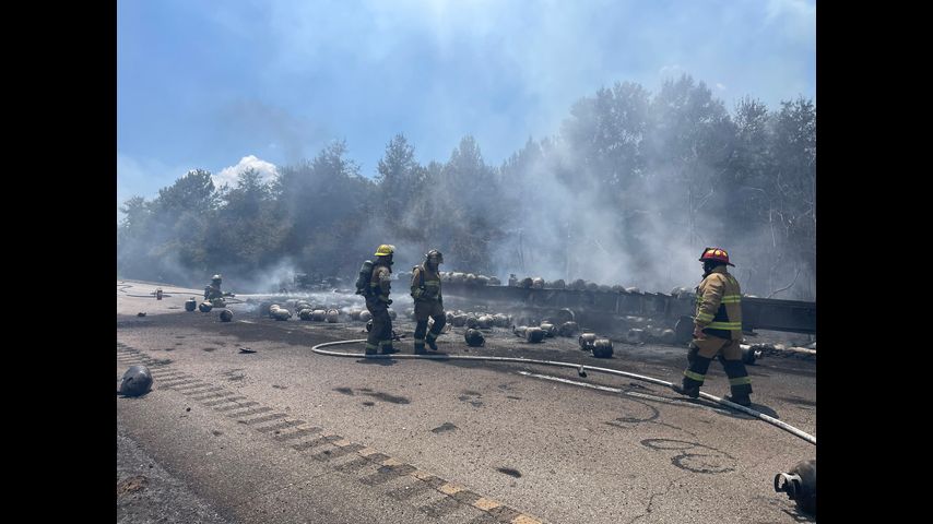 Truck carrying propane tanks catches fire on Mississippi interstate