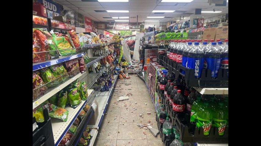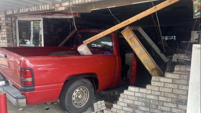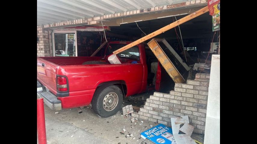 The Livingston Parish Sheriff's Office shared pictures of the truck inside the store near the corner of Walker South Road and Bonnie Bleu Drive. A brick wall was broken and the hood of the car pushed into aisles lined with chips and sodas.