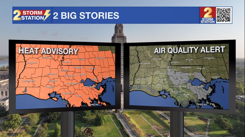 An *AIR QUALITY ALERT* will be in effect from 6am Tuesday through midnight. The Louisiana Department of Environmental Quality is forecasting an Ozone Advisory Day for East Baton Rouge, West Baton Rouge, Livingston, Ascension, Iberville, and Pointe Coupee Parishes for the rest of today and again on Tuesday. The Air Quality Index indicates that ozone will be at the Orange level, which is unhealthy for sensitive groups. Increasing ozone levels may cause unhealthy air quality during afternoon hours. Active children and adults, the elderly, and people with respiratory