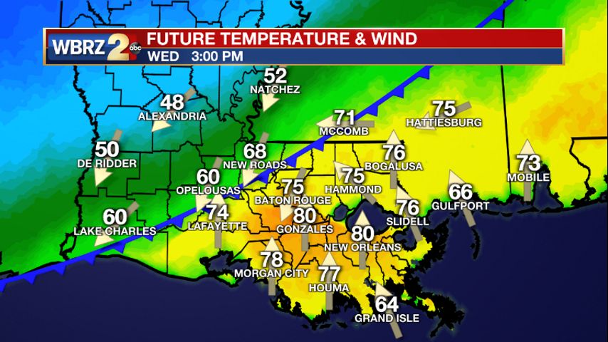 Tuesday AM Forecast: A cold front will cut through the WBRZ viewing area