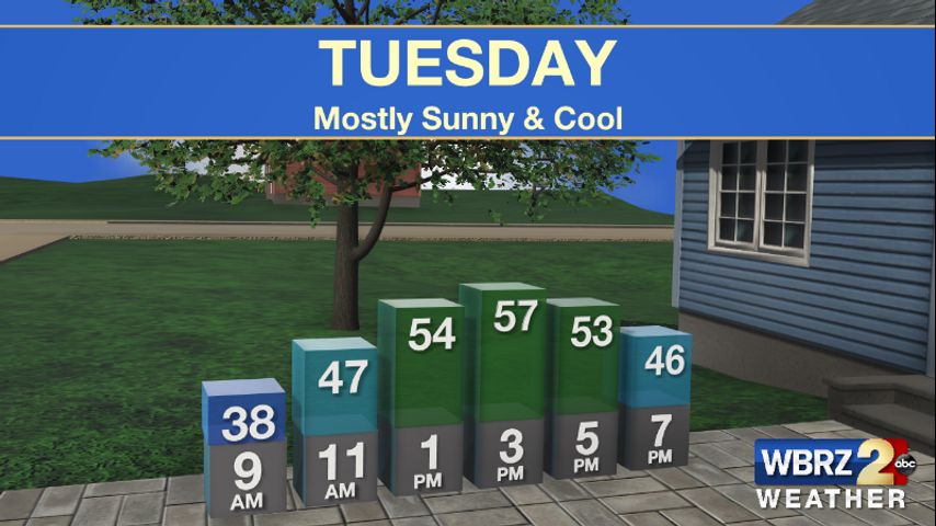 Up Next: Wednesday morning will be in the mid-40s, and the afternoon temperatures will reach the upper 60s. The next cold front will approach the area on Thursday. A few showers will move through along the front from northwest to southeast. The shower activity will be minimal, and most areas will stay dry. The cold air will start to settle in by Thursday evening and temperatures will be back into the 30s on Friday morning. Friday afternoon will be clear and cool with temperatures in the 50s. Temperatures will rebound fast with upper 60s and low 70s in the forecast on Saturday and Sunday. A few scattered showers expected over the weekend too. Click here to see the 7-day forecast.