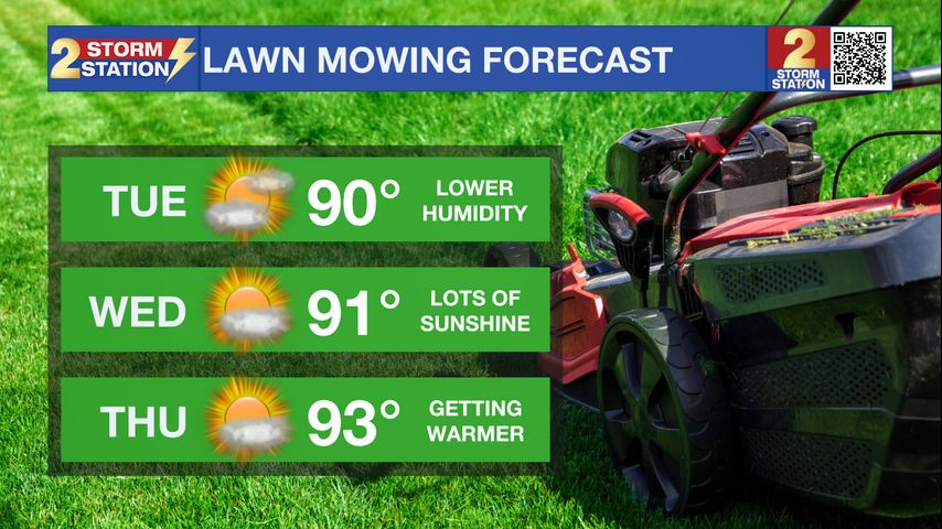 Drier air will stay in place for most of the week, keeping humidity manageable, and rain chances low. Available moisture will increase late week into the weekend, causing a more uncomfortable feel, and a few more storms.