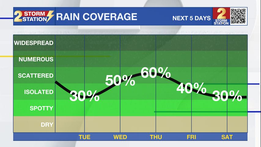Tuesday AM Forecast: Isolated storms today, Increased coverage for second half of week