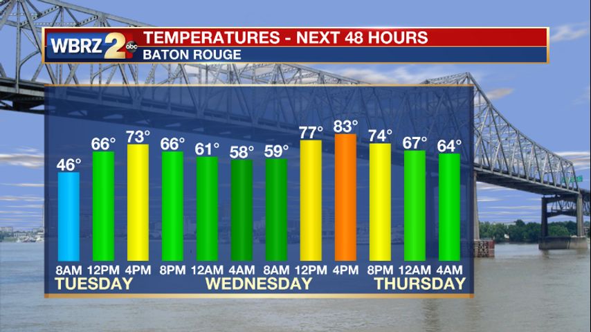 Hour-by-hour weather tracking is available for your location on the WBRZ WX App on your Apple or Android device. Follow WBRZ Weather on Facebook and Twitter for even more weather updates and unique weather insight from the whole team!