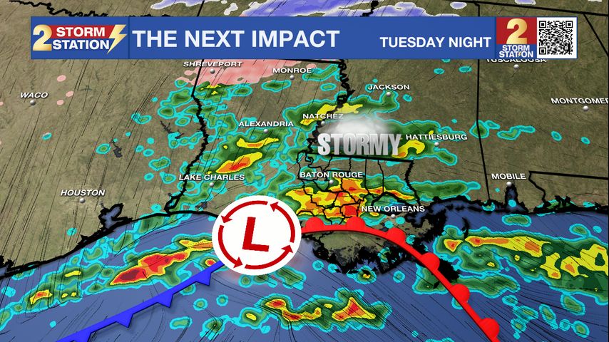 Today & Tonight: Chilly morning conditions under a mix of sun and clouds will turn cool and overcast this afternoon. Look for highs near 60 degrees again today. Besides a spotty shower or two, rain coverage during the day today will be slim. Radar activity is expected to ramp up after sunset in both coverage and intensity as a storm system slides across the Louisiana coast. The majority of thunderstorm activity is expected to stay over Gulf waters, but one or two strong to severe storms may make their way inland overnight. Heavy rainfall and small hail are of the highest concern with this system. From Tuesday night to early Wednesday morning, some areas could collect between 1-3" of rainfall. While flooding isn’t a major concern, heavy rain in urban areas could lead to some localized runoff issues.