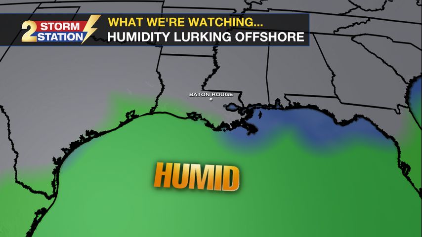Up Next: Humidity will creep back in through the remainder of the workweek, though what’s felt will depend on location and time of day. The steamiest conditions will be more prevalent south of I-10 during the day, whereas areas north could dip into a slightly more “comfortable” realm at times. Meanwhile, most areas will be on the humid side at night. Overnight lows will climb in response. Daytime highs will follow a similar trend, reaching the mid-90s by Friday.
