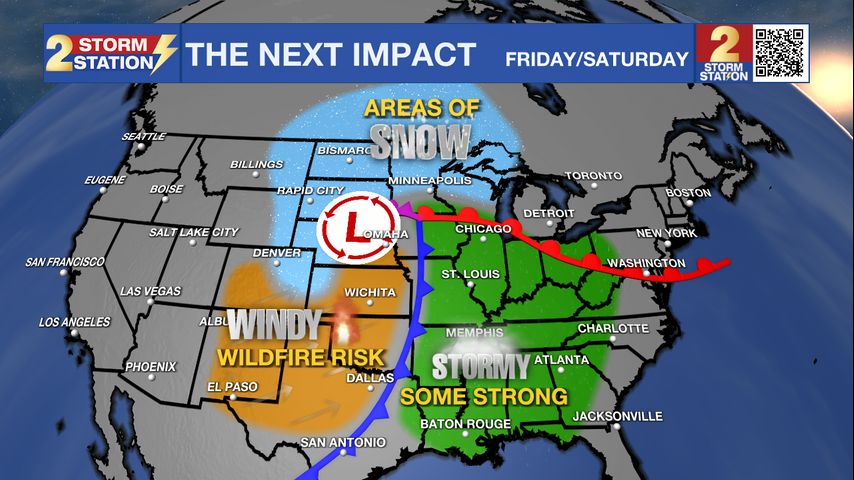 Beyond: After the storms move out, Sunday and Monday will be much calmer. Highs will ease back into the upper 70s, with lows dipping into the upper 40s to low 50s. Just a few clouds may linger on Sunday, but expect mostly sunny skies to start the new workweek.