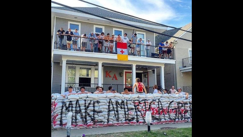 NEW ORLEANS- A Tulane University fraternity constructed a wall of sandbags last Thursday with pro- Donald Trump statements spray painted.