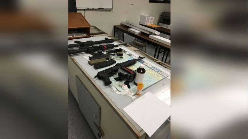 Deputies say a suspicious vehicle parked nearby had in plain sight, two AR-15 rifles, an AK-47 rifle with the stock removed, and a .22 caliber revolver. Further investigation revealed illegal narcotics, and more than 200 rounds of ammunition inside of the vehicle.