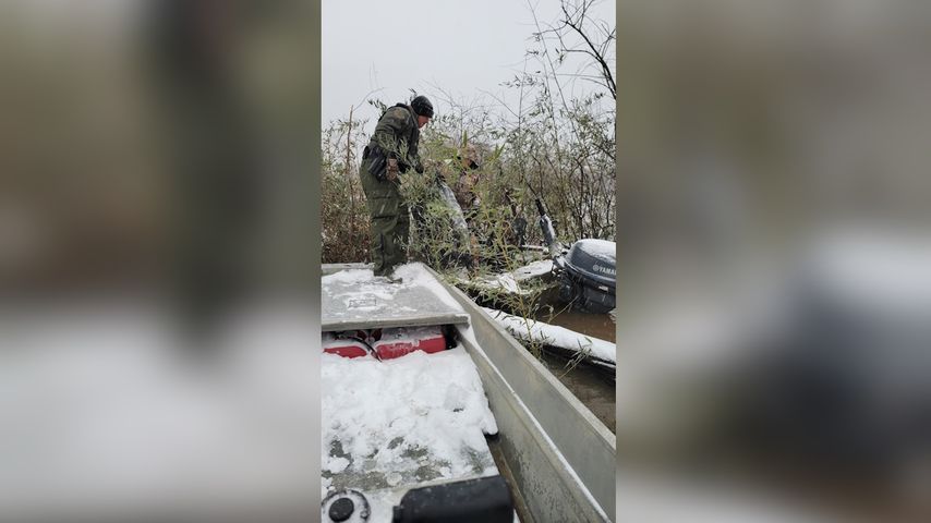 Agents received information around 7 a.m. about two duck hunters that were stranded. Agents responded to the scene by boat and found the duck hunters in their boat inside their hunting blind around 8:45 a.m.