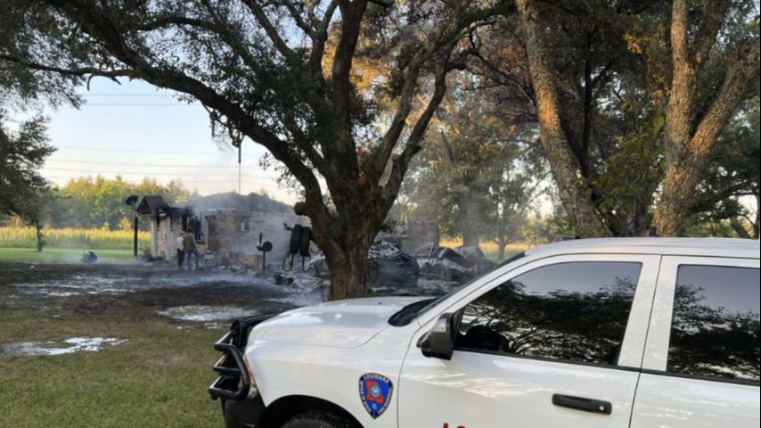 Photos from the scene showed the home and cars in front of it, all of which appeared to be mostly destroyed by the flames.