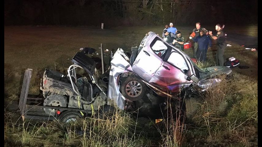 The truck was said to be "lodged" in a culvert, and a trailer carrying an ATV also appeared to be wedged underneath the wreckage.