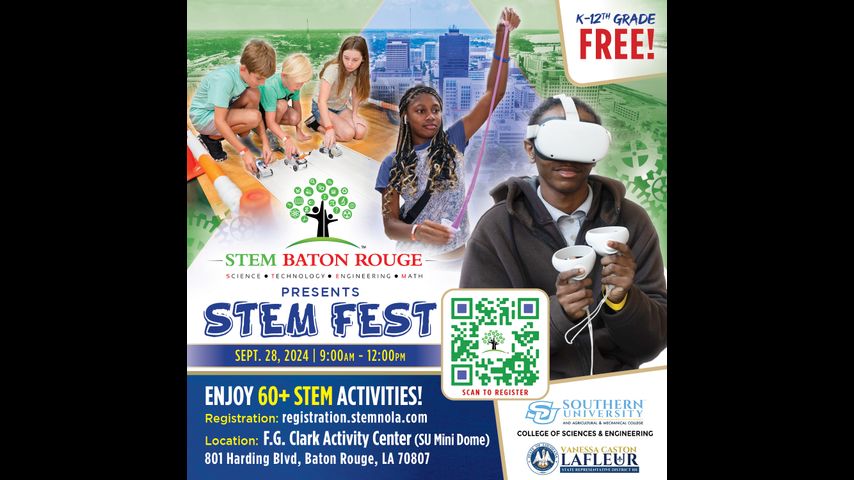 The STEM fest is from 9 a.m. to noon at the F.G. Clark Activity Center  — the Southern University Mini Dome — at 801 Harding Blvd.