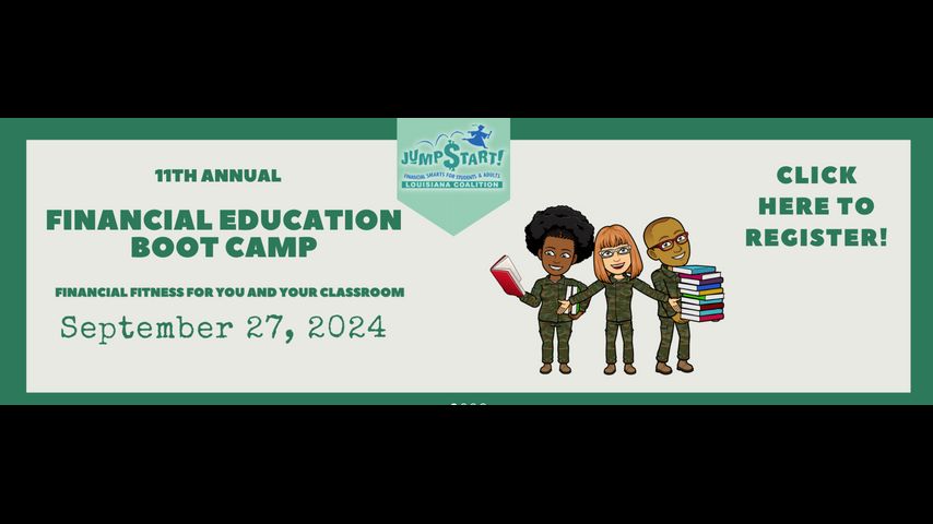 On Friday, the Louisiana Jumpstart Coalition is hosting its 11th annual Financial Literacy Boot Camp at the EBR Parish Professional Development Center on 3000 North Sherwood Drive.