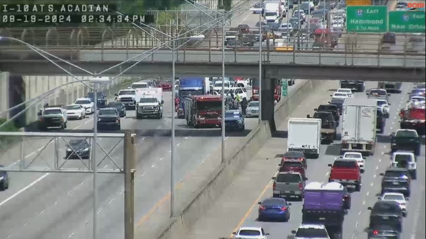 The crash happened just before 2:30 p.m. Congestion was approaching the I-10/I-12 split.