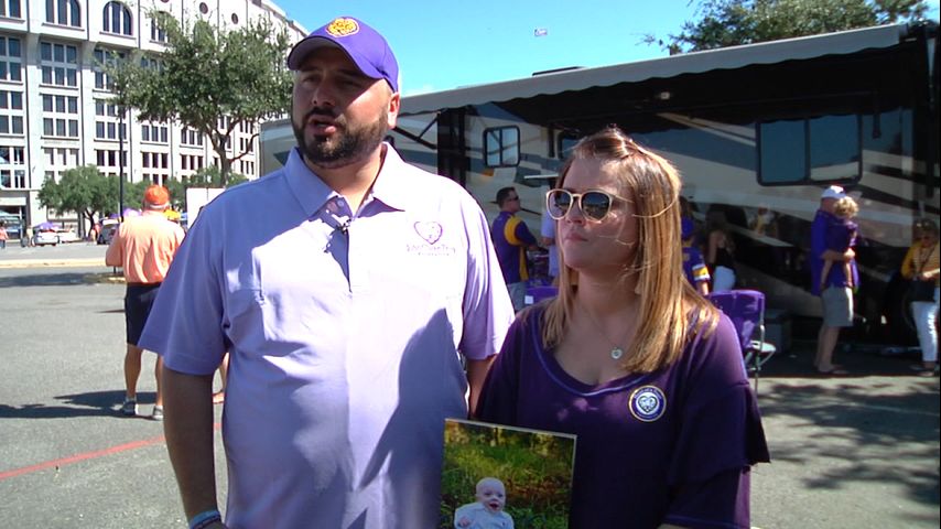 Life-long LSU fans, Holly and Jonathan Perry lost their infant son to a brain bleed back in 2015. The two were heartbroken by the loss.