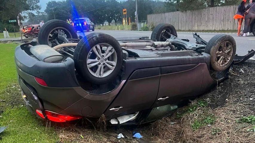 The Halloween night crash happened on Hwy. 74 near L. Landry Road about 5:40 p.m. Two passengers in the overturned vehicle had moderate injuries, as did a passenger in the other vehicle. The injured were taken to local hospitals.