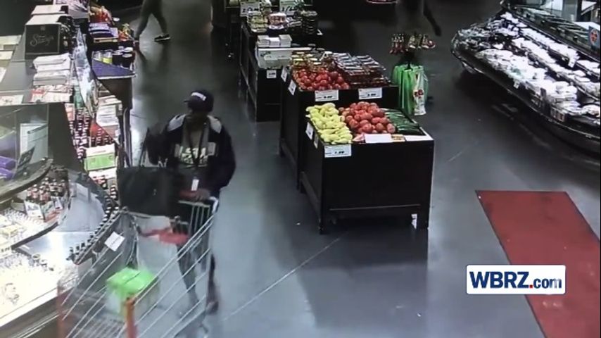 On May 18 the suspects entered Rouses Market on Airline Highway and placed two bottles of liquor in a purse and fled the scene. The woman was seen wearing an LSU jacket and hat. The man was seen wearing a gray sleeveless shirt.
