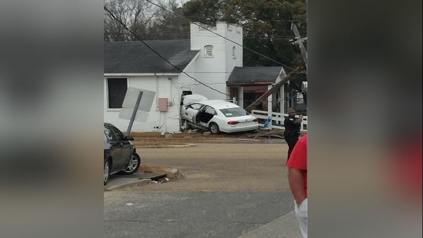 The vehicle hit utility pole and a fire hydrant before crashing into Greater Saint Michael Baptist Church. Entergy says about 100 homes in the area were without power.