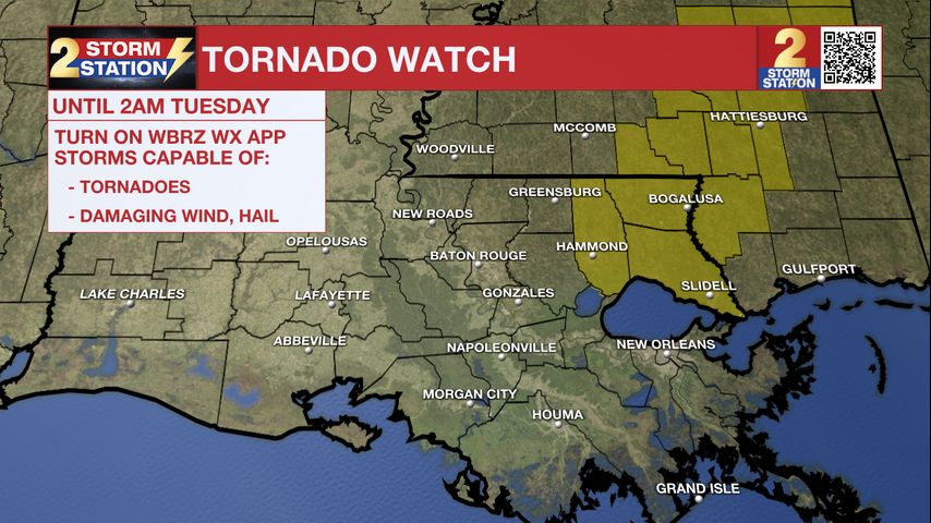 UPDATE: Baton Rouge metro has been trimmed out of the Tornado Watch