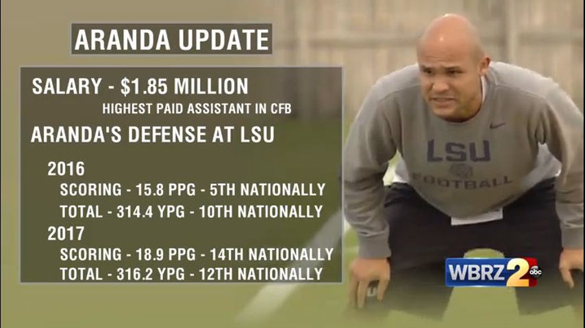 On Wednesday afternoon the Houston Chronicle reported that Texas A&M was expected to name Aranda to the position in College Station. However Ross Dellenger of the Advocate first reported Wednesday evening that LSU had recruited Aranda to stay with LSU for another season.