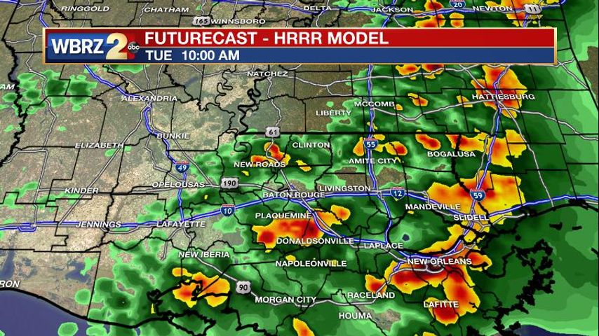 THE SCIENCE: Fairly significant changes have been made to the short term forecast. What was looking more like “garden variety” showers and thunderstorms yesterday, has ramped up into a low-end severe weather threat. The Storm Prediction Center has placed the northeastern half of the WBRZ Weather Forecast Area in a “slight risk” for severe storms. A fast moving shortwave trough will cross the region today allowing showers and thunderstorms to develop quickly. Strong thermodynamics will move into the area through the morning causing rapid destabilization in the atmosphere. A dry pocket in the mid-levels will help wet bulb zero heights fall during the morning as well making large hail the main possibility with a secondary damaging wind threat. Tornadoes can’t be ruled out however that threat should primarily be well east of the local area. Most of the action will be done with by early afternoon. Rain coverage is expected to be in the 70 percent range. The push of cool air will lag well behind the front until a surface high pressure across the norther tier can guide it southward Wednesday Night. A secondary “front” will cross the area with temperatures dropping about 10 degrees behind it for Thursday and Friday—though these readings will still be above average. Over the weekend, upper level ridging to return and as an area of high pressure sets up in the Eastern United States, return flow will kick back into gear. Temperatures will sail beyond average again with highs and lows a good 15 degrees above normal for Saturday and Sunday. Rain chances are expected to increase next week, but there remains typical long-term uncertainty with the exact nature of that forthcoming storm system.