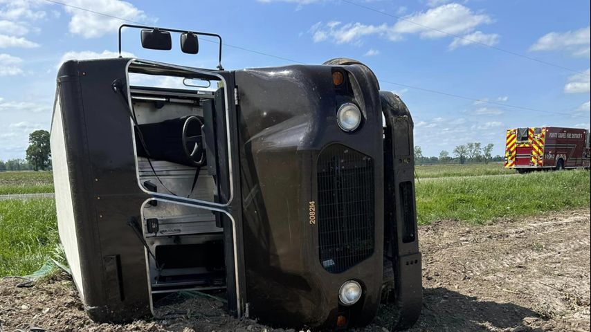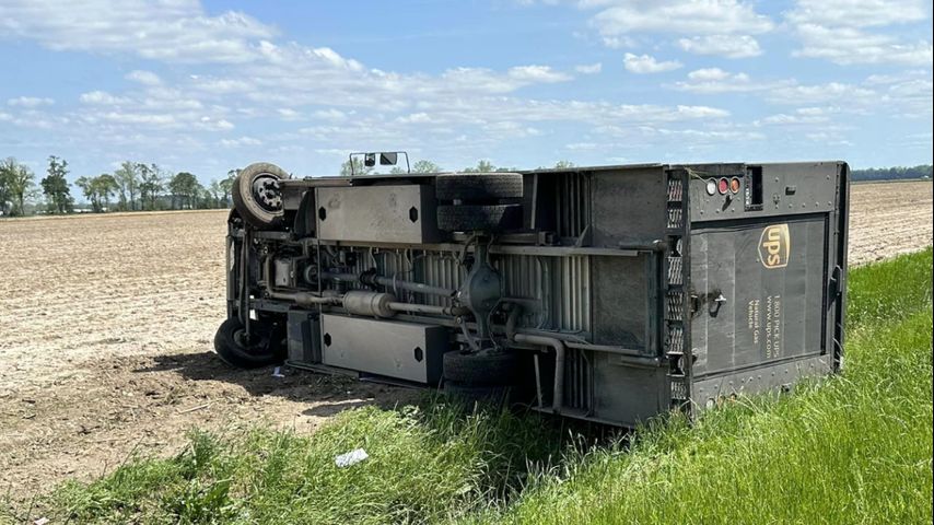 POINTE COUPEE PARISH - A UPS truck overturned along Joe Beaud Road in Pointe Coupee Parish on Monday.