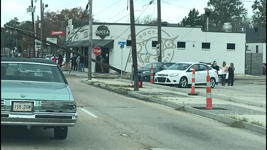 BATON ROUGE - A car crash has left power lines hanging low over a busy roadway near downtown Baton Rouge Monday morning.