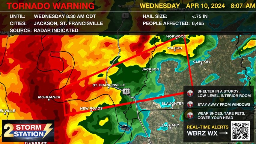 The National Weather Service said a tornado with a preliminary rating of EF-1 — suggesting winds of 86-110 mph — hit north of St. Francisville.