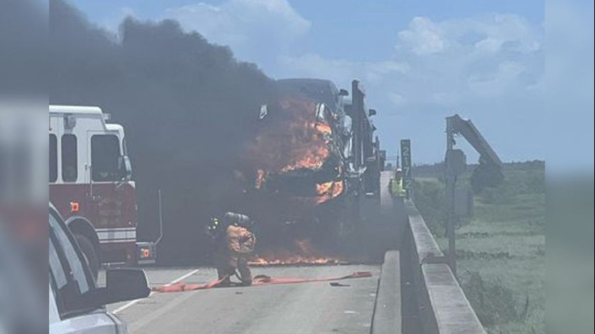 According to State Police, the fire happened around 2 p.m. By 2:40, one lane was open for traffic while crews cleaned up the wreck.