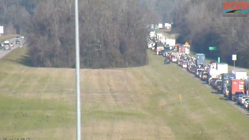 According to Louisiana State Police, there was an accident involving an 18-wheeler and a car on fire at mile marker 173. LSP said there was also a six car pileup at mile marker 176.