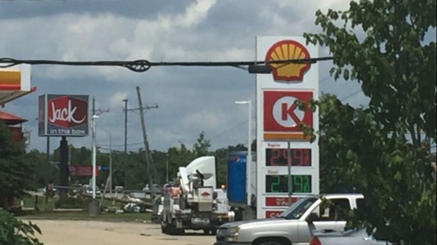 BATON ROUGE - Hundreds of homes were left without power after a vehicle became caught on low-hanging lines and pulled a utility pole down.