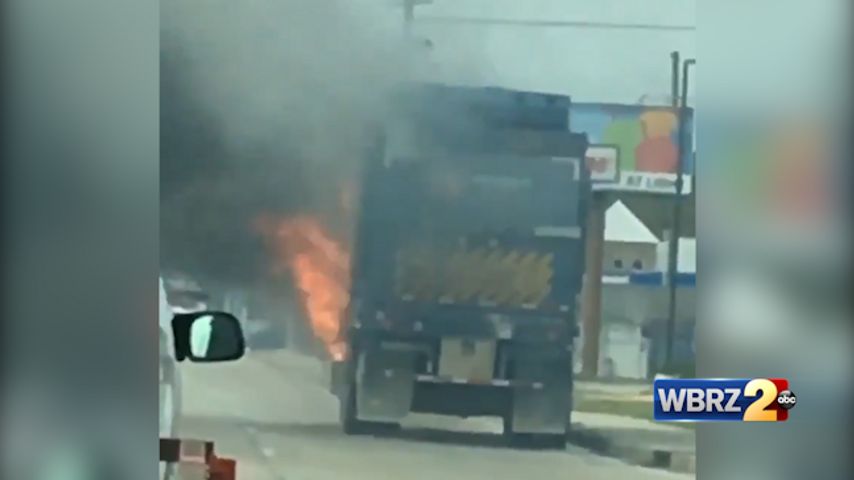 BATON ROUGE - A garbage truck with flames spewing from its sides briefly brought traffic to a halt on O'Neal Lane Monday evening.