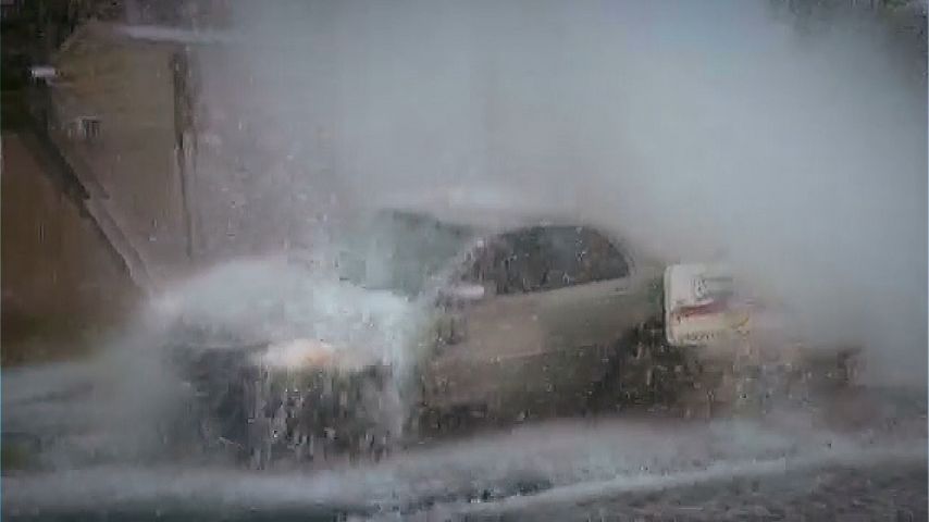 VIDEO: Car flooded after crashing into fire hydrant on Jefferson Highway