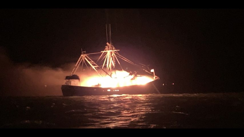 VIDEO: Coast Guard rescues 4 from burning boat near Gulf coast