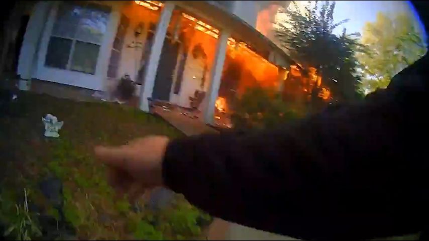 VIDEO: Officer runs into burning home to help residents, dog still inside