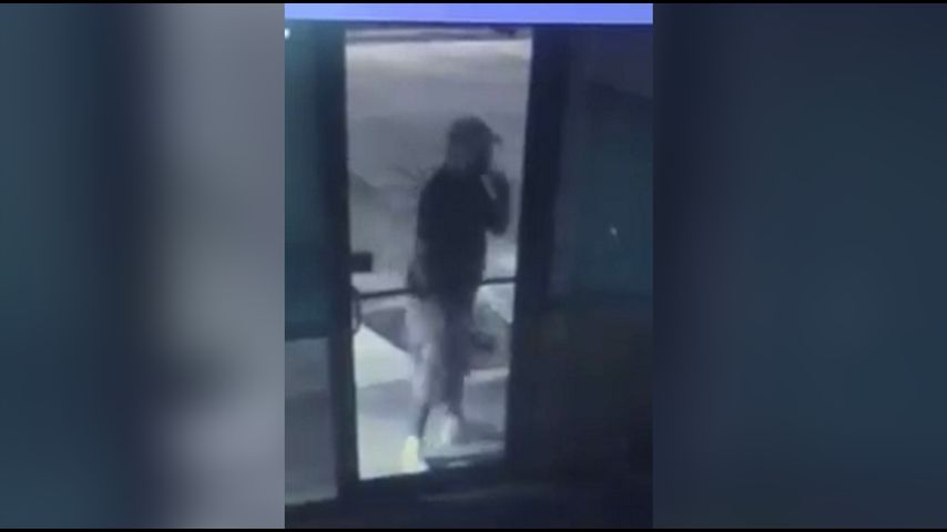 Iberia Bank surveillance cameras captured the man looking into the building through the glass front doors. Minutes later, surveillance video showed the man carrying stolen computer equipment from inside the building as he flees.