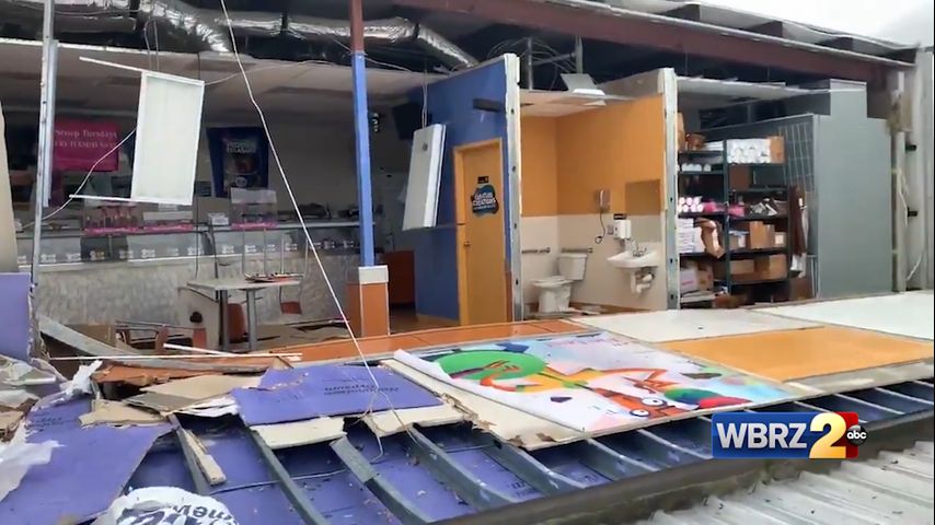 Video captured by WBRZ reporter Taylor Rubach showed the interior of the business, located along Airline Highway in Prairieville, completely exposed from the outside. No injuries were reported related to the collapse overnight.