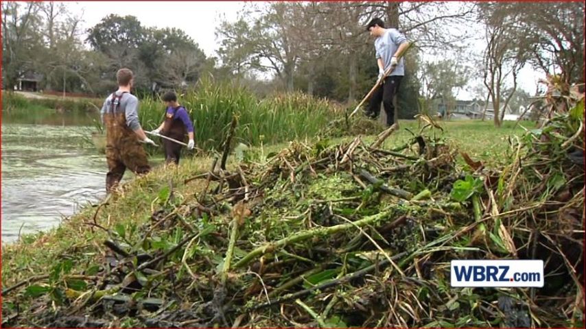 Volunteers help clean up invasive ''alligator weed'' in LSU lakes