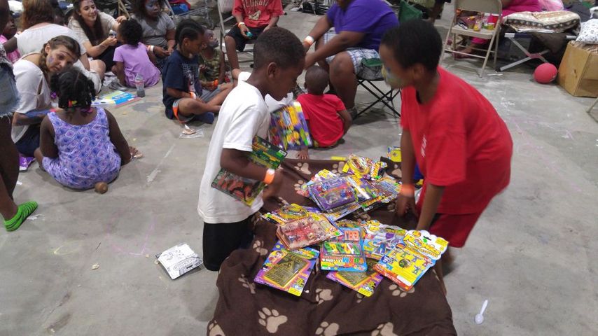 The Party Time Bluebonnet location did donated painting kits and toys for children at the shelter set up at Celtic Studios and donated seven face painting kits.