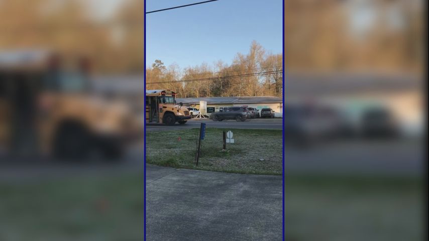 In a video posted to Sandy's Facebook page Friday, two cars, a pickup truck and sedan are seen flying by Livingston Parish bus 550 as her children are getting on. In the video, the bus's lights can be seen flashing with the stop sign out.