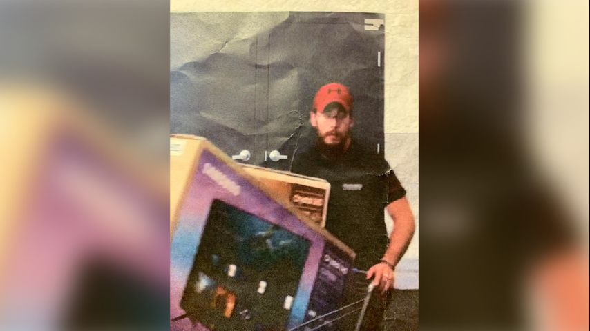 A surveillance photo shows the man leaving with a cart full of TVs on May 27.