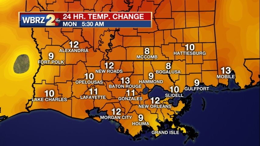 Up Next: Tuesday will be very similar to Monday; temperatures will be in the low 70s but cloud cover will be increasing throughout the day. Overnight the clouds will work to trap the heat and keep overnight lows near 60 degrees. This will lead to a muggy, rainy Wednesday. Scattered showers and storms are most likely in the afternoon and into the overnight hours too. A cold front will approach the area very early on Thursday with storms moving in along it. The WBRZ viewing area is under a risk for severe weather on Thursday associated with this line of storms. Stay with the WBRZ Weather Team this week as we continue to update the forecast and timeline on this potential severe event. Click here to see the 7-day forecast.