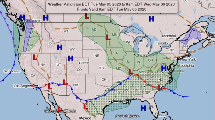 The trend of increasing temperatures and humidity will be halted by Wednesday morning. A pair of cold fronts are expected over the next 7 days.