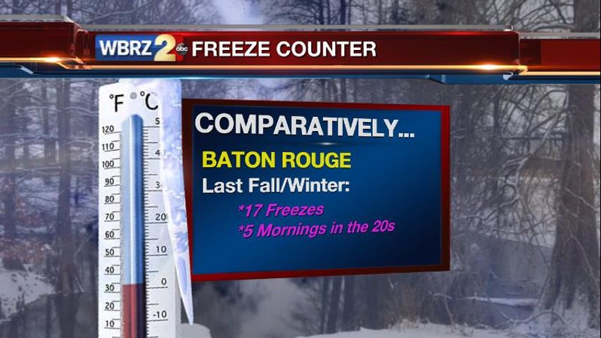 For just the second time this cool season, the Baton Rouge area dipped below freezing on Tuesday Morning. Last fall and winter, there were 17 freezes—five of those mornings slipped into the 20s.