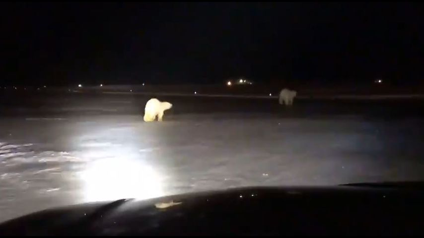 WATCH: Airport employee videos polar bears on snowy runway