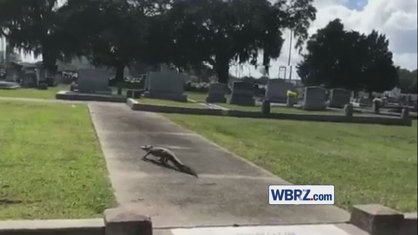 WATCH: Alligator walks through Louisiana cemetery