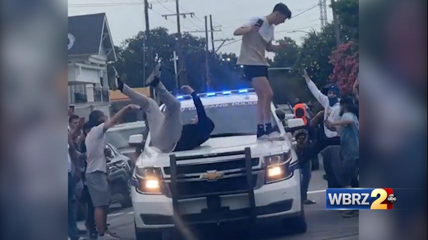 The stunts were chronicled on videos taken around the New Orleans area Sunday. Posts on social media also showed cars doing donuts as onlookers watched from just feet away, one video showing a person struck by a vehicle.