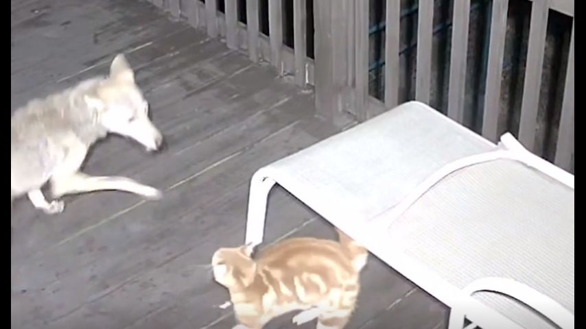 WATCH: Cat narrowly survives attack by coyote on front porch