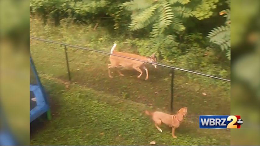 When he looked out his second-story window, he was greeted by the sight of his family dog running up and down a chain link fence. On the opposite side of the fence was a wild doe keeping pace with the canine.